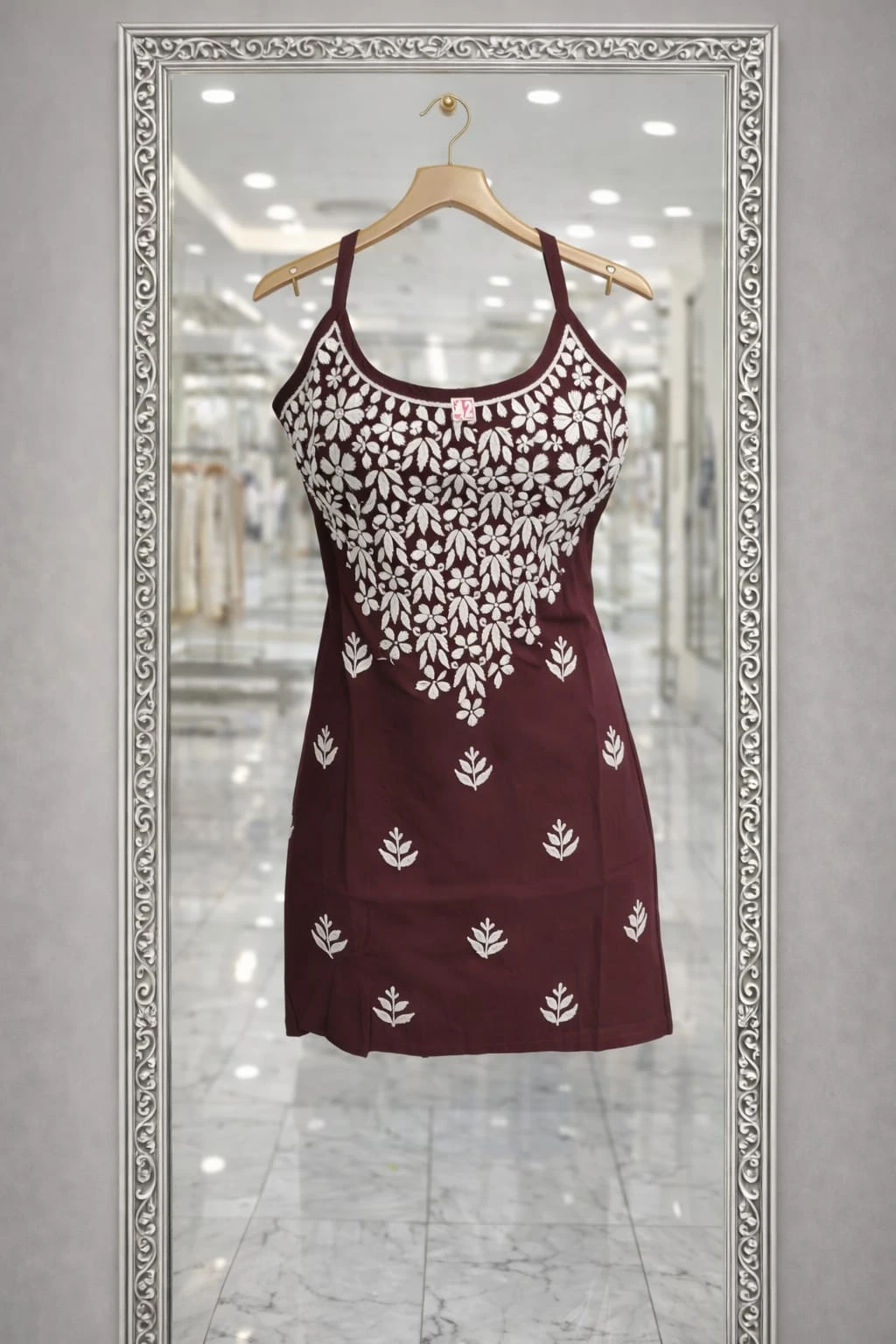 Chikankari Viscose short tunic resham spaghettie