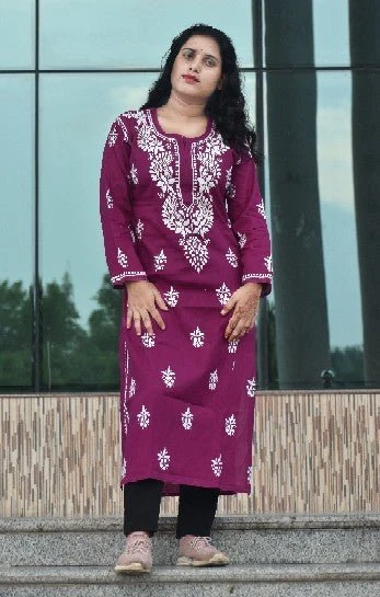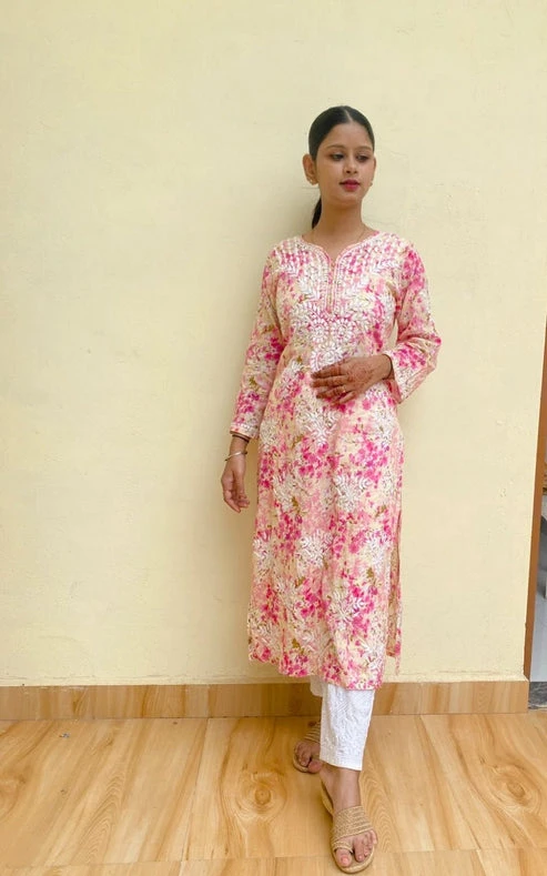 Viscose chikankari gala booti mukesh kurti
