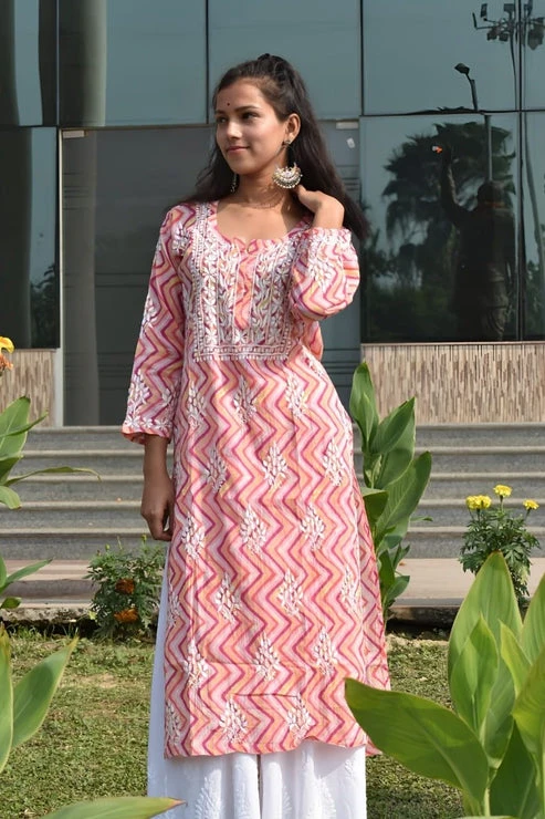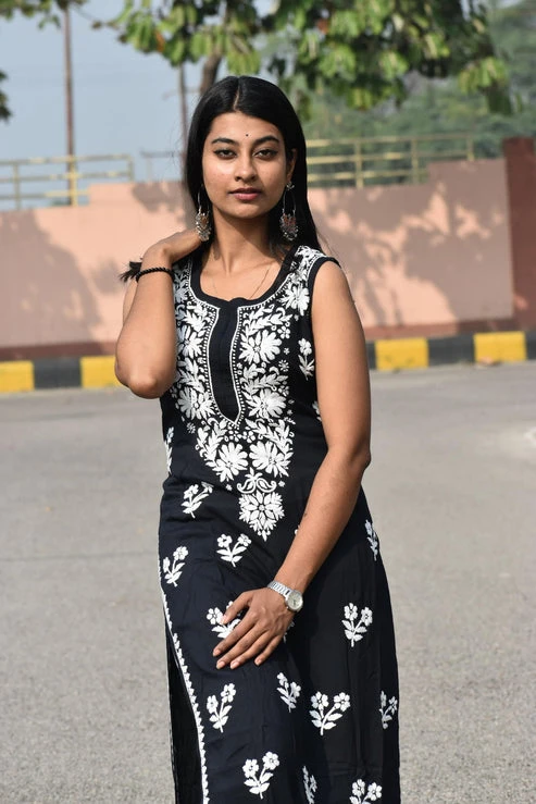 Modal sleevless chikankari kurti