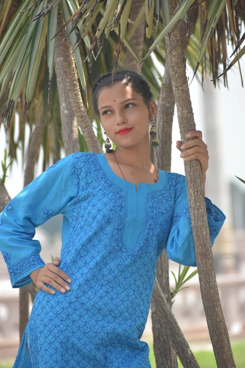 Chikankari Viscose short tunic resham spaghettie