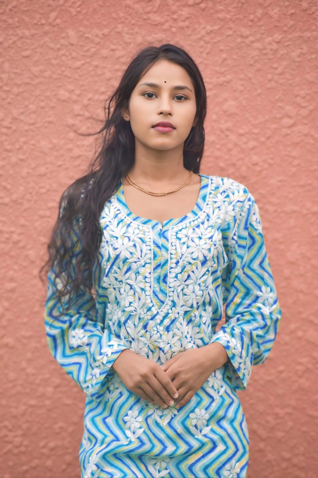 Modal sleevless chikankari kurti